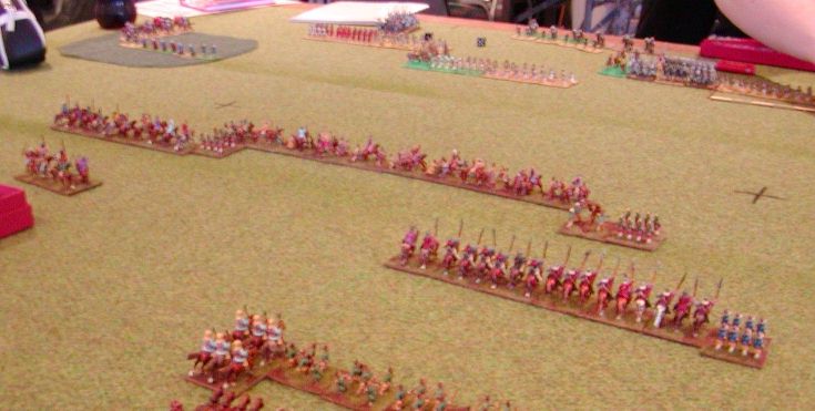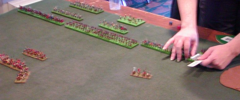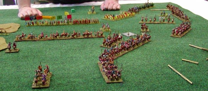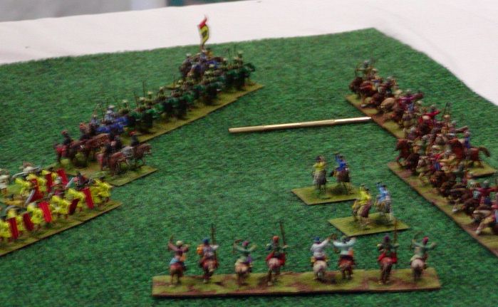A closeup of my mongol ally arriving on table and toying with two SD light horse. The Mongols would eventually break but I went on to win the game with no other losses. This is the only time I ran my all mounted (bar horde(I)) list 2 |